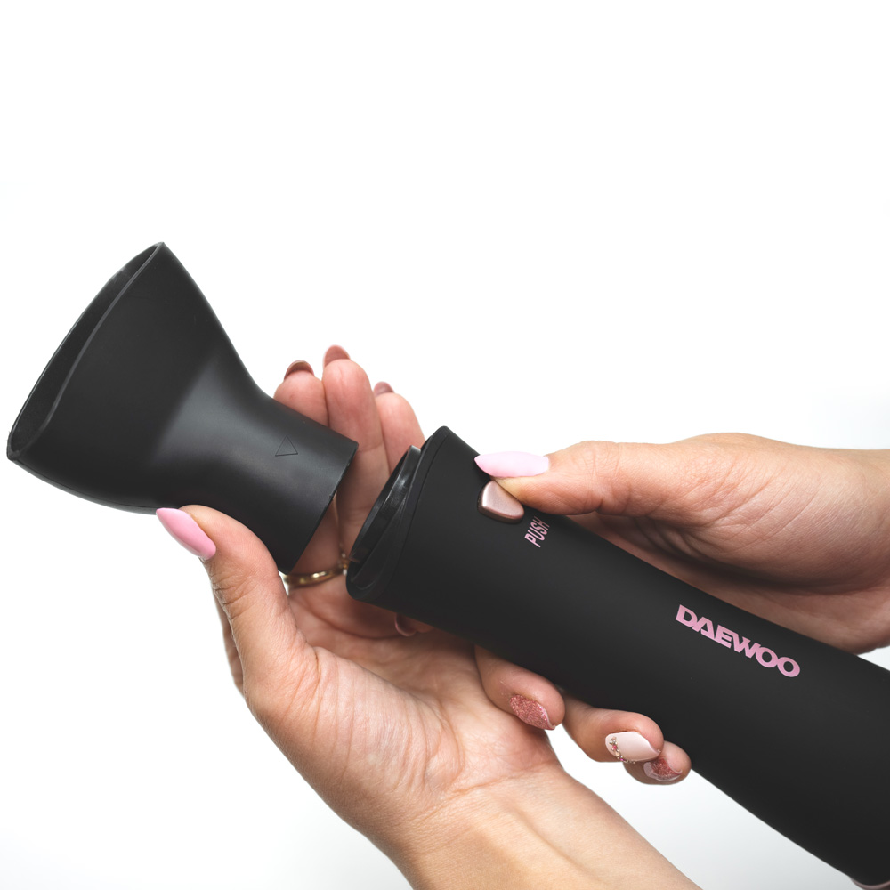 - Mellékelt kiegészítők: szűkítő idom, hajkefe, masszírozókefe, félkefe, kerek kefe
